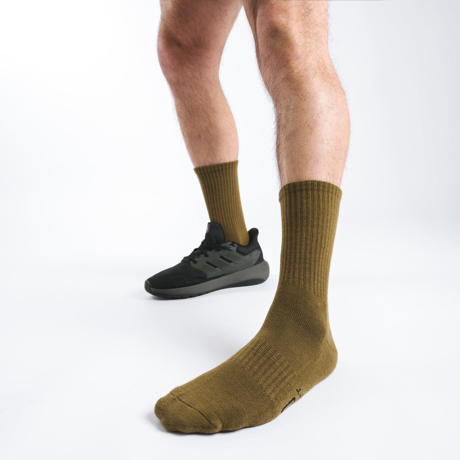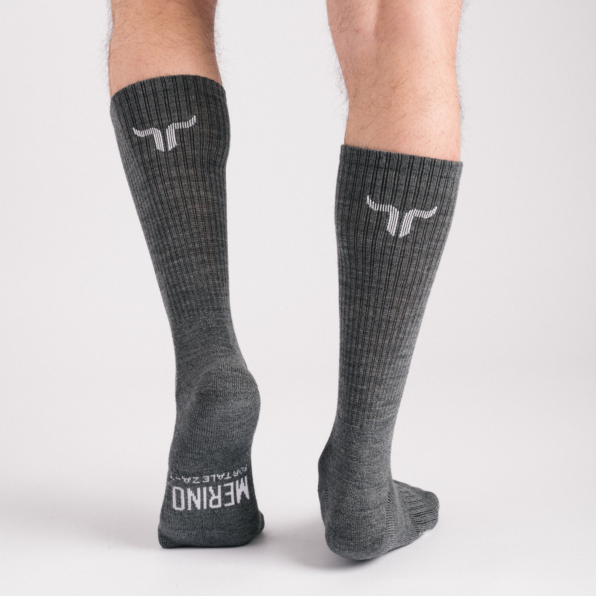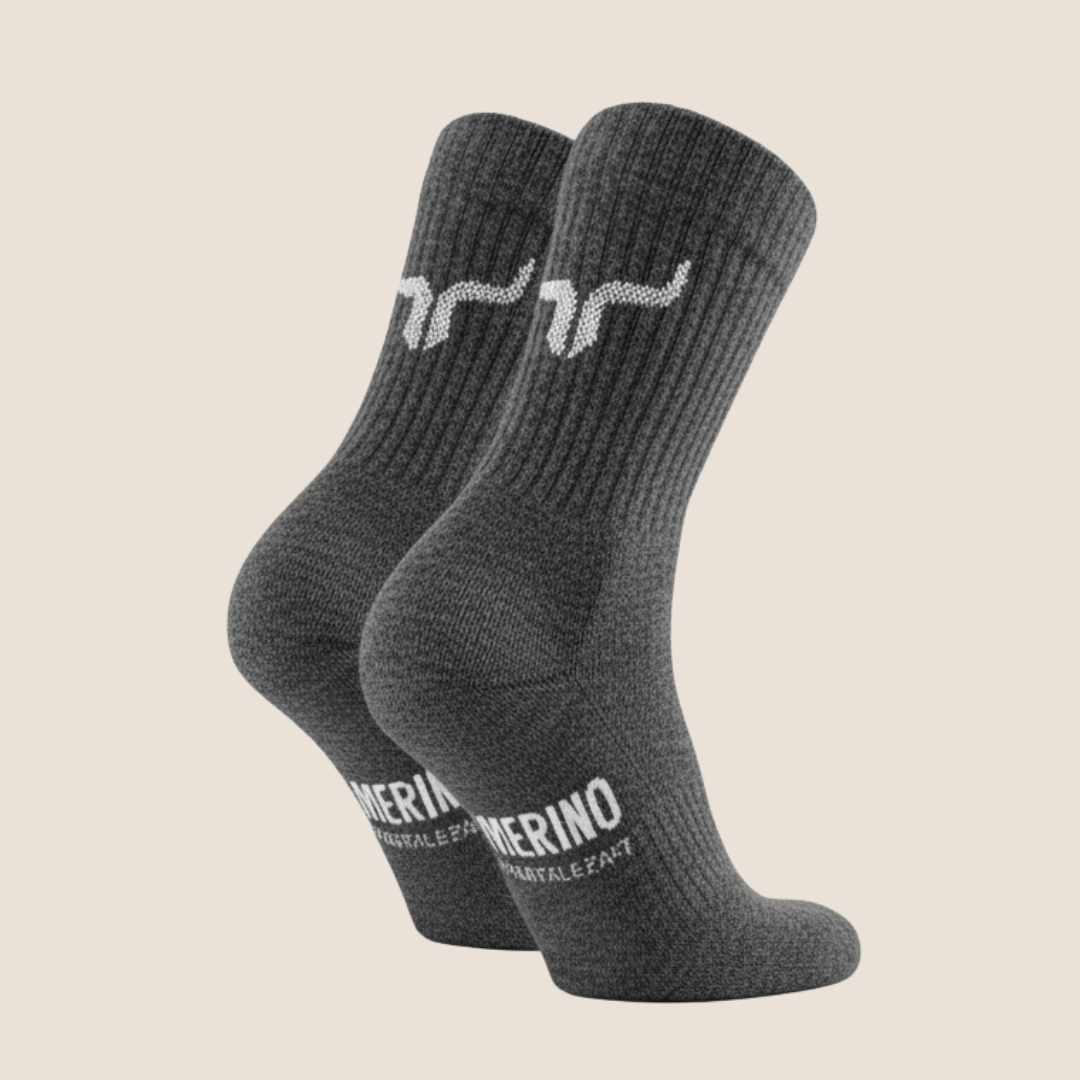 Nuestros calcetines están elaborados con 43% lana Merino real, combinada con 42,5% acrílico técnico, 12% nylon y 3% elastano. Esta mezcla balanceada permite obtener la suavidad, termorregulación y propiedades antibacterianas naturales del Merino, junto con la durabilidad, elasticidad y estructura que aportan las fibras técnicas.